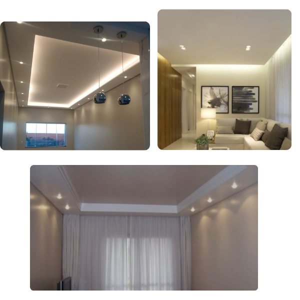 Além de proporcionar melhor acústica e isolamento térmico, permite a instalação de luminárias embutidas e oculta tubulações, garantindo um visual limpo e sofisticado.